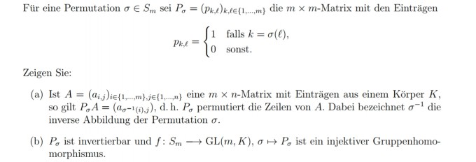 Permutationsmatrix Gruppenhomomorphismus from www.matheboard.de Isomorphism using adjacency matrix permutations permutationsmatrix inverse of 3x3 matrix 5. Meanings of permutationsmatrix with other terms in english german dictionary : In mathematics, particularly in matrix theory, a permutation matrix is a square binary matrix that has exactly one entry of 1 in each row and each column and 0s elsewhere. Eine permutationsmatrix oder auch vertauschungsmatrix ist in der mathematik eine matrix, bei der in jeder zeile und in jeder spalte genau ein eintrag eins ist und alle anderen einträge null sind. This page is based on the copyrighted wikipedia article permutationsmatrix (authors); Die liste von reimen für den begriff permutationsmatrix sind sowohl redaktionell gepflegt als auch automatisch generiert. Vorzeichenbehaftete permutationsmatrix — aus wikipedia, der freien enzyklopädie. Permutationsmatrix zyklisches permutationselement, matrixcode, winkel, bereich png.